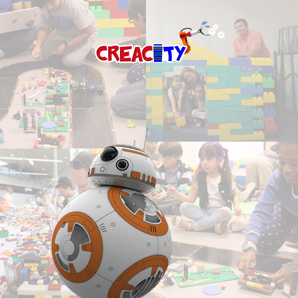 Un gran evento tecnológico, para toda la familia, el cual cuenta con tres espacios; Crea Robots con motores y sensores, Juega en la súper pista de robots, con luces y efectos y construye ciudades con bloques de todos los tamaños.